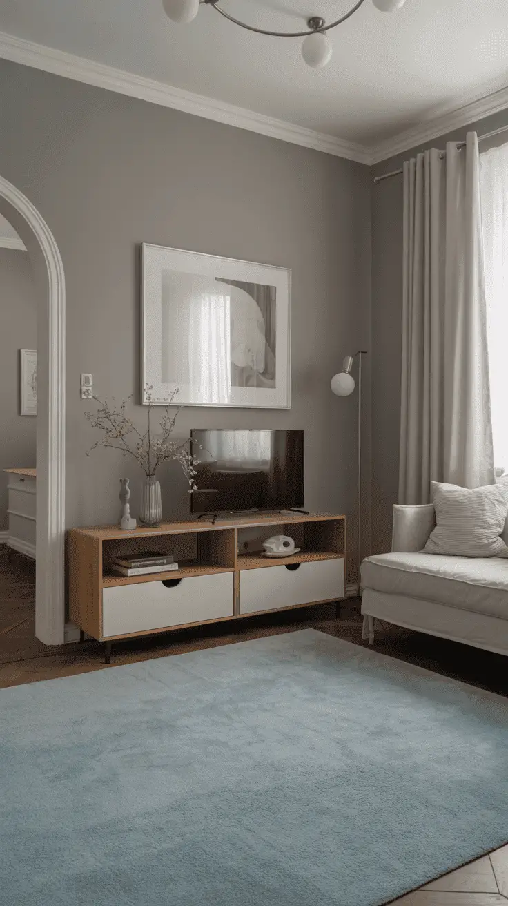 Some people think that the gray wall can make the whole room boring and the best way to solve this is to use any new color like blue. One of our favorites among the wide range of blue tones is light blue. The gray area looks much more neutral compared to any blue and hence any light blue rug will blend easily with the gray walls. Using a light blue carpet can also create an airy and spacious visual ambiance and make our room look more attractive.