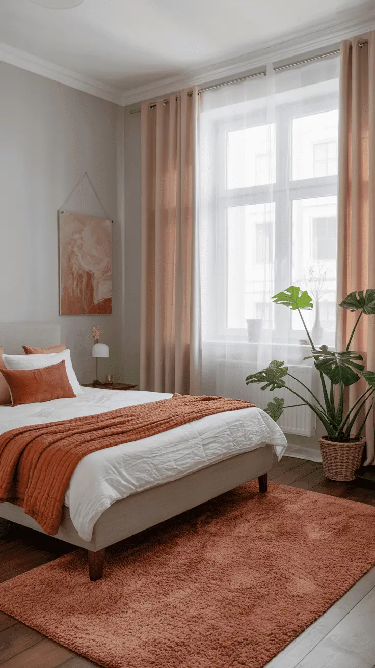 Coral Color: If we want to create a simple and beautiful energetic ambiance thanks to the gray pink home decoration, we can choose coral color. Although the coral color is very suitable for homes where home decoration is applied in light gray tones, we can also use this color to complement dark gray.