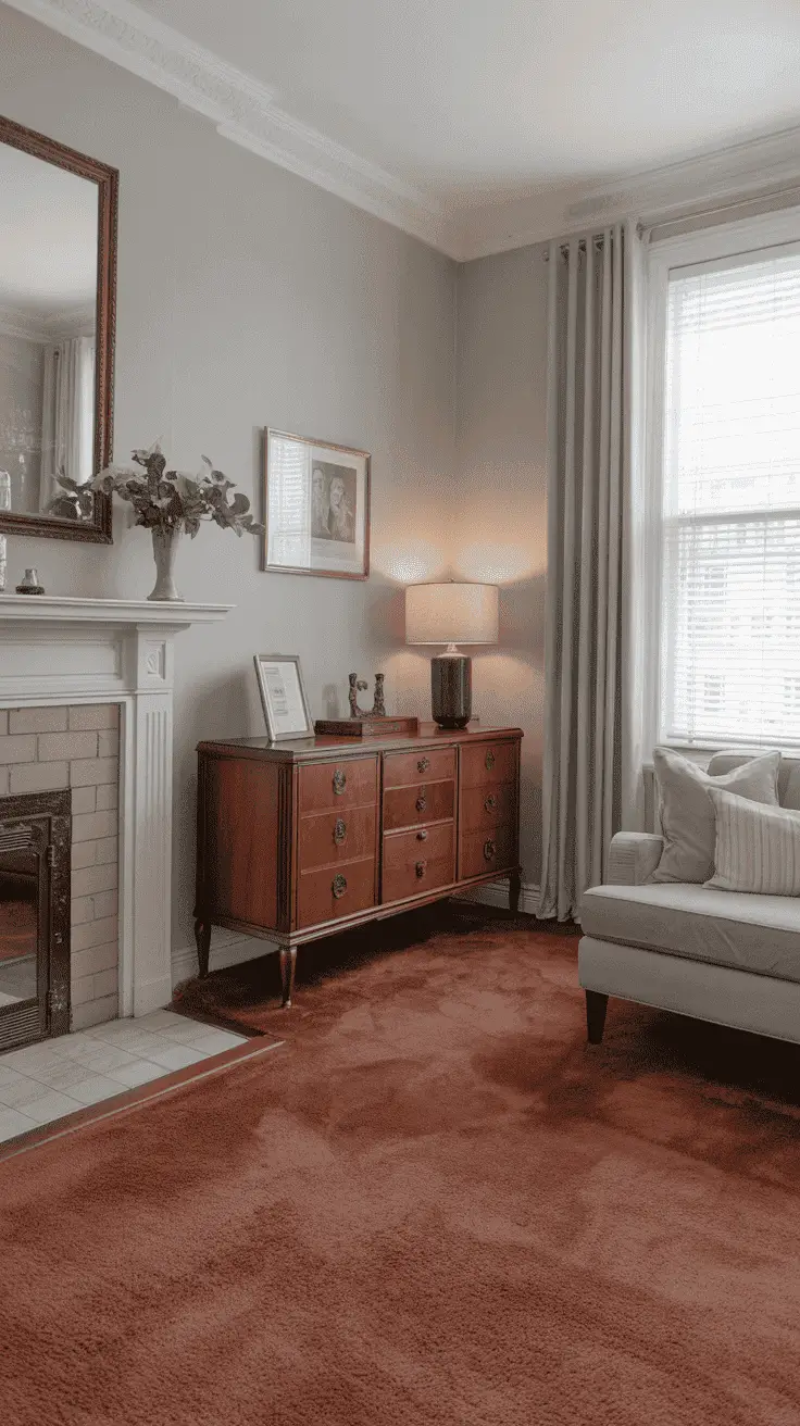 While brown carpet is a great match to light gray walls as it creates a sense of comfort in small rooms, we don’t need to be afraid to pair our brown carpet with gray walls in large rooms. Knowing that brown is the closed version of beige, it’s no surprise that it blends perfectly with gray walls.
