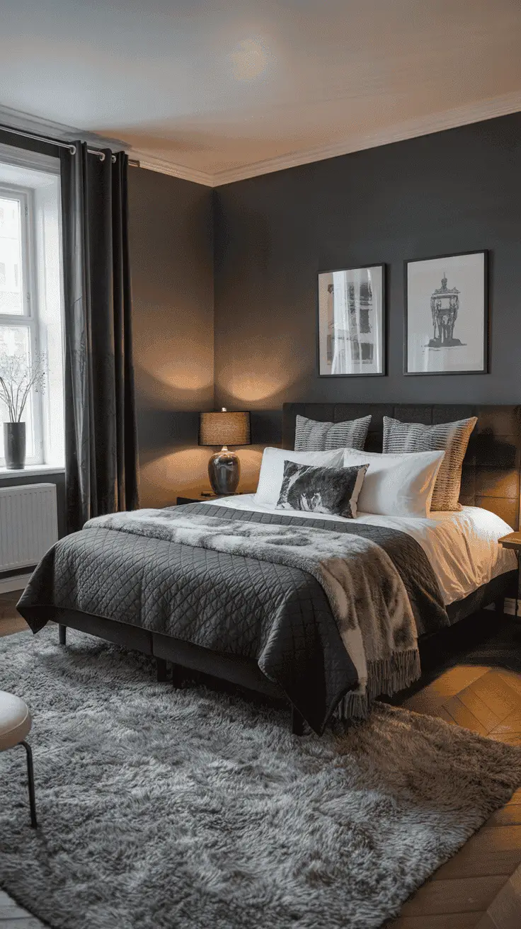 One of the colors that will harmonize for gray walls is beige. If we have a wall painted gray, the beige tone adds a subtle warmth to the room and counteracts the cold feeling of gray. When used in the bedroom, beige carpets next to dark gray walls will guarantee a peaceful rest.