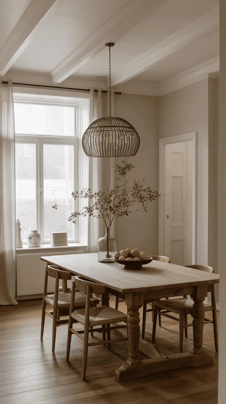 There are small and simple touches that can elevate your farmhouse styled dining area to new heights. For example, this modern light pendant that’s quite striking in design while still having such a simple silhouette.