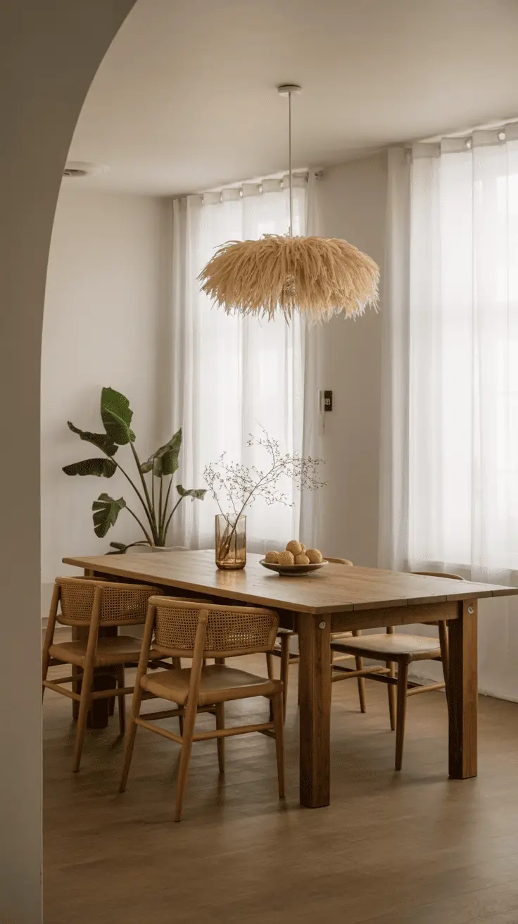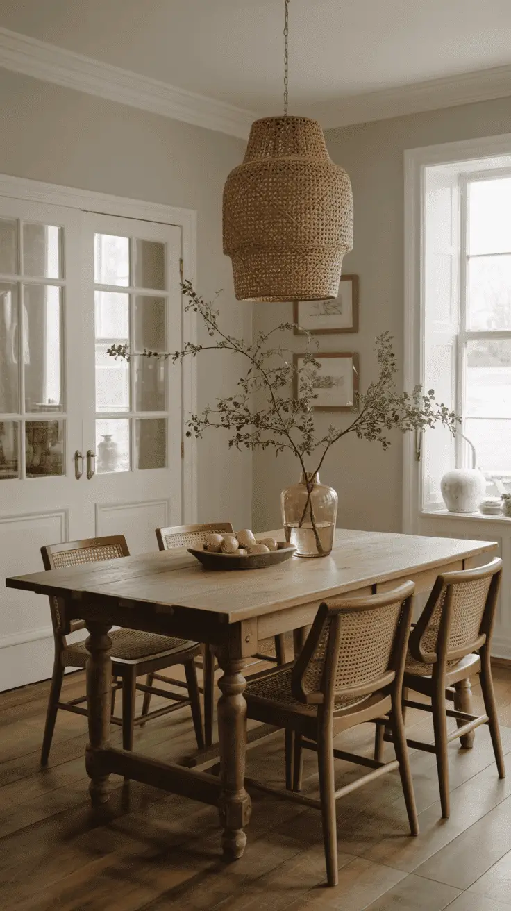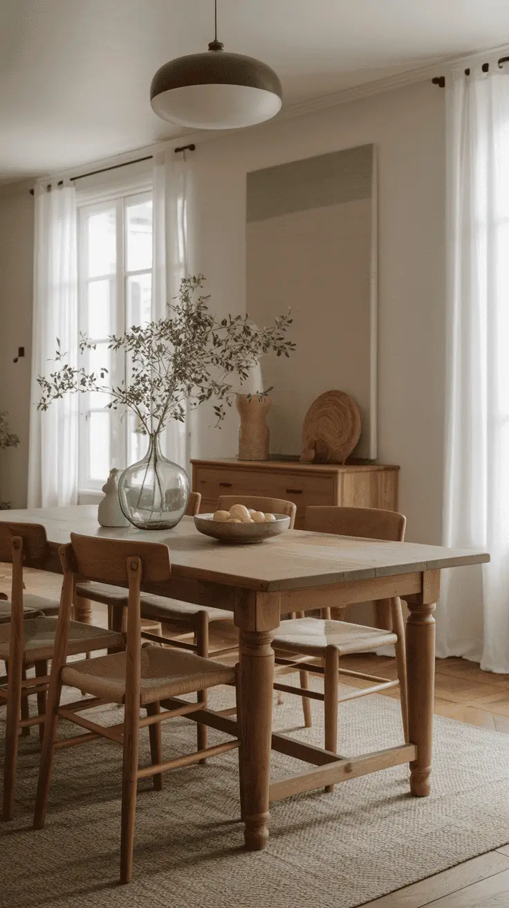The brown color and wood textures will go really well with the farmhouse table! Additionally, we love how the beads chandelier above the table also adds a seaside vibe to the entire space.