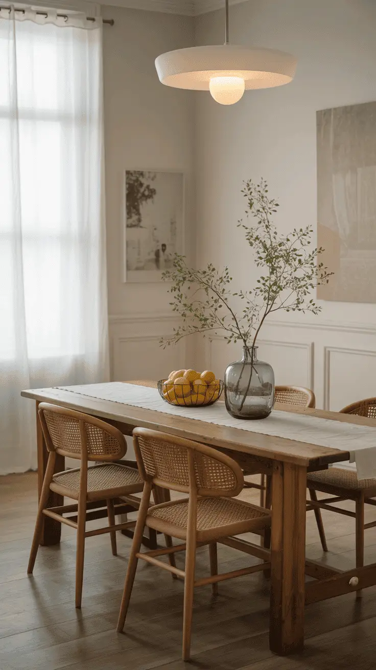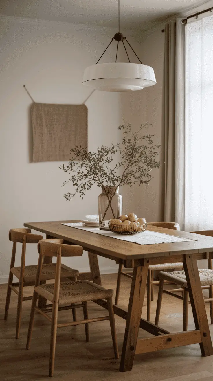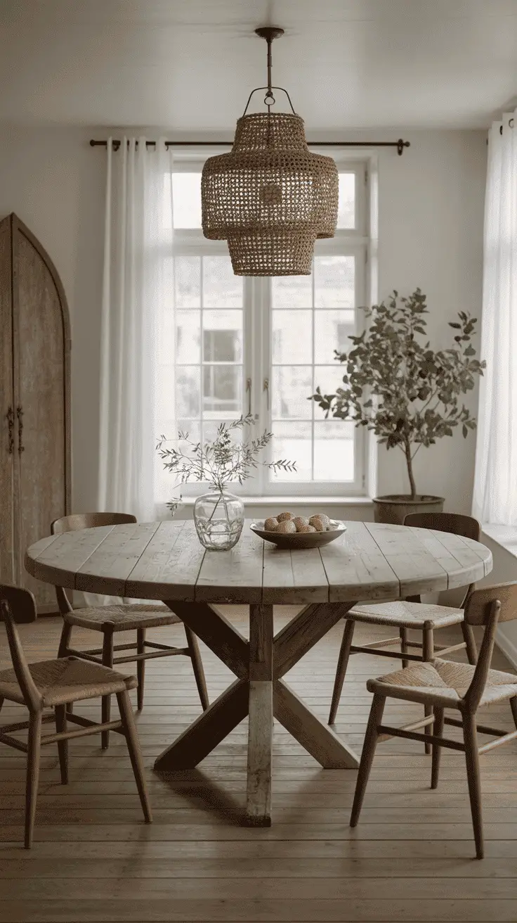 So far, we have mostly seen rectangular dining tables, but a round or oval-shaped table can be a great choice as well! It’s especially ideal for introducing more soft edges in the space, as the rounded corners provide a certain sense of safety and welcome.