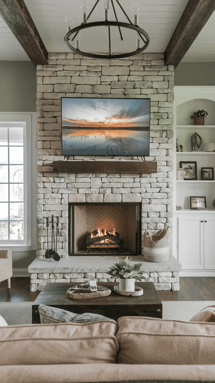 11. Stone TV Fireplace Wall