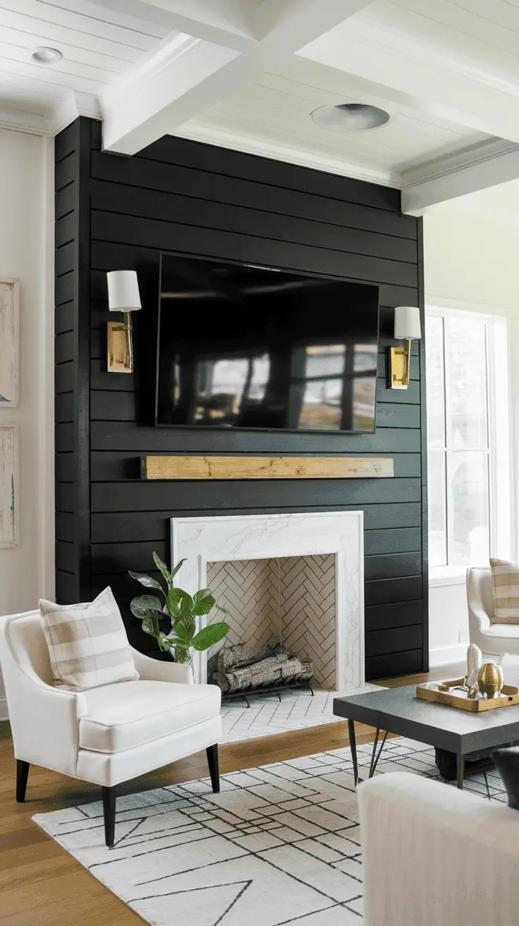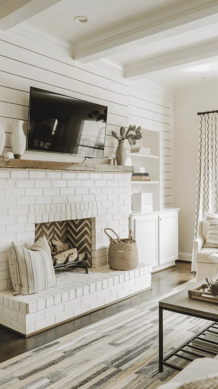 A Shiplap fireplace wall is rustic and practical. The wall design securely holds your fireplace and TV while giving your living space a facelift. You can install it yourself or get a contractor to help.