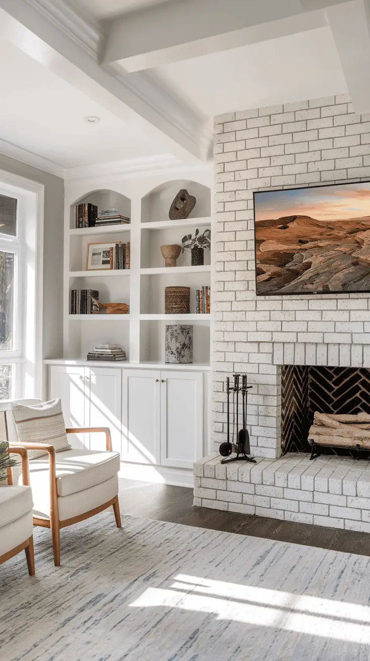 If you already have a modeled fireplace wall and don’t want to make significant alterations, you can add a few bricks to the fireplace. This simple and time-saving idea allows you to instantly transform your place to give it a warm, rustic feel without doing a lot.
