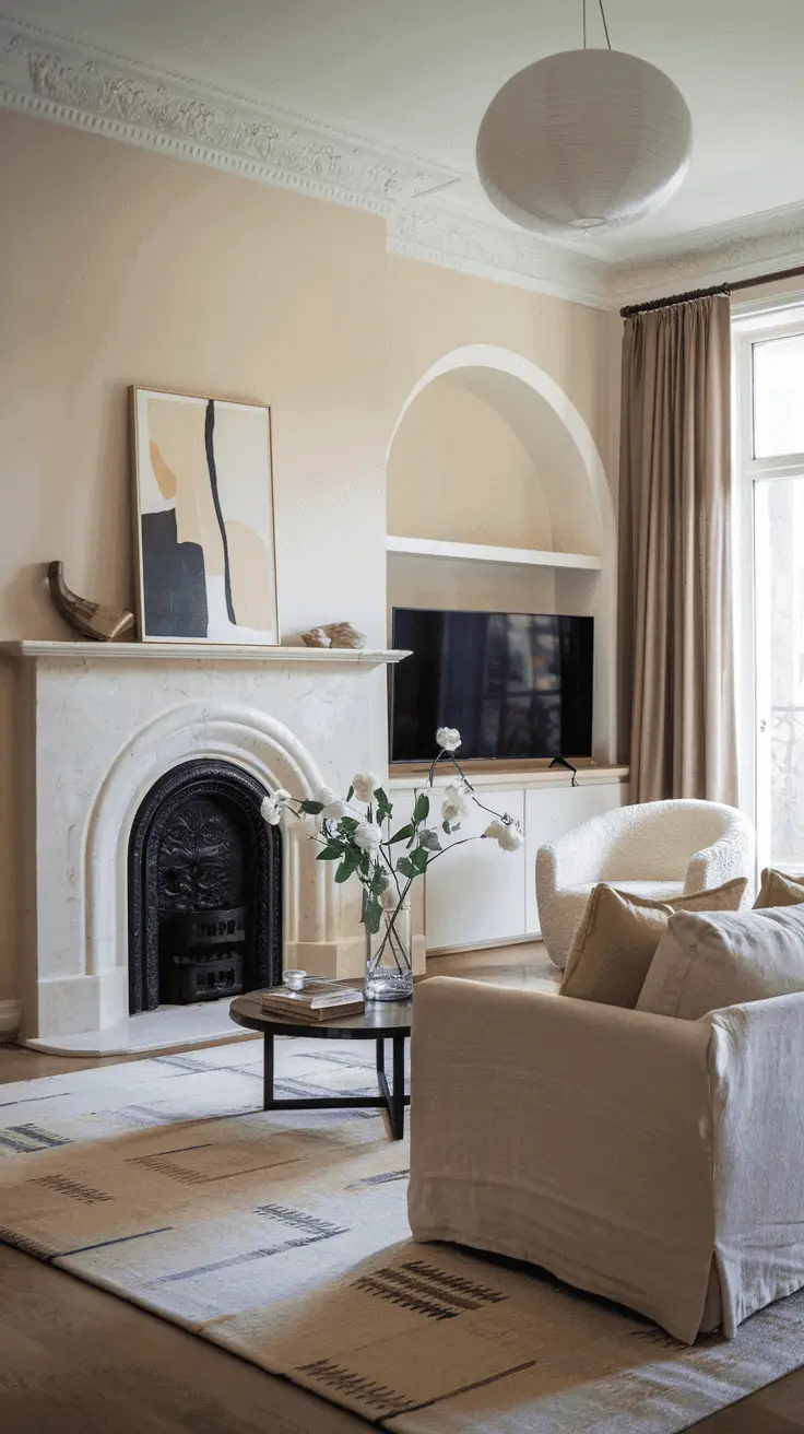 How do you style a room with a TV and fireplace?