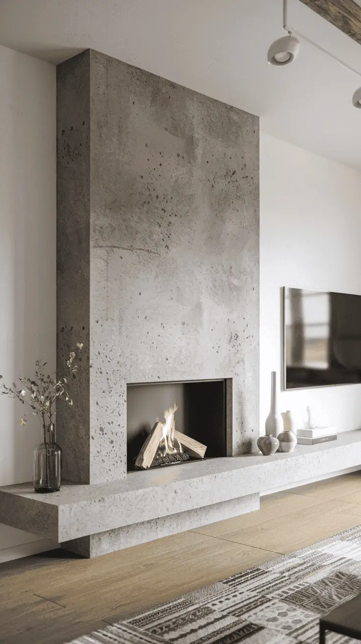 35. Concrete TV Fireplace Wall