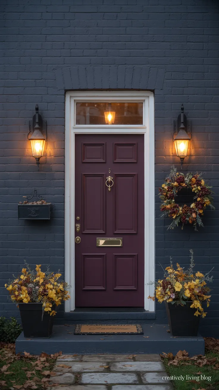 Sherwin Williams color, Exclusive Plum, is an excellent front door color with a gray house. A purple front door is a sign of creativity and open mindedness. If this sounds like the perfect description of you, Exclusive Plum is your color. Show off your creativity with the underused color of purple for your front door.
