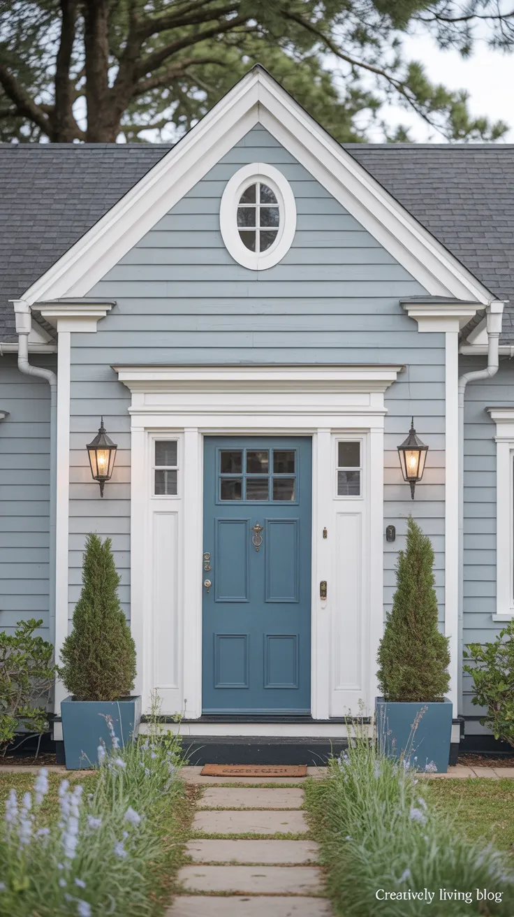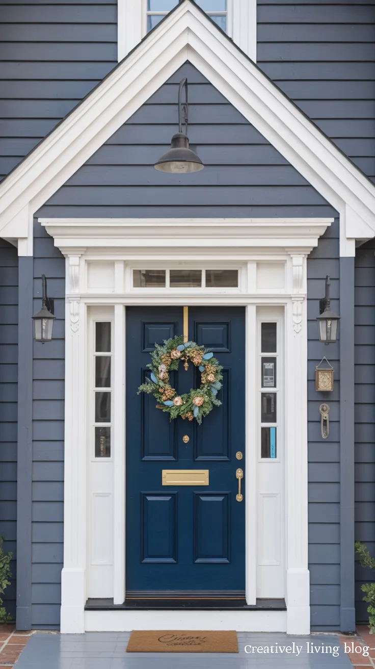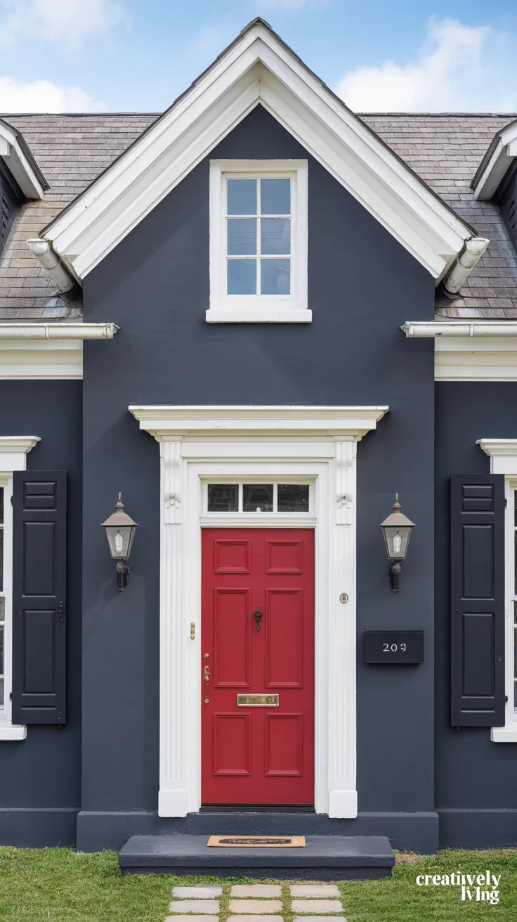 This deep greenish blue color is the perfect pop of color for your gray house. Mix this with some white flowers around your front door to really add a statement. This color would be perfect for both a dark and light gray house.