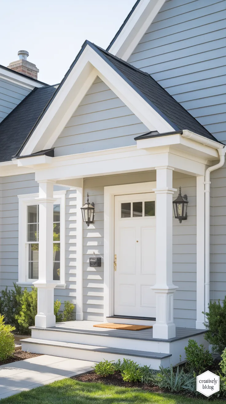 This low saturation blue color is the perfect light shade of paint for your dark gray house. Mix a dark gray house, with white trim and this perfect pop of color with Billowy Breeze for a stunning look.