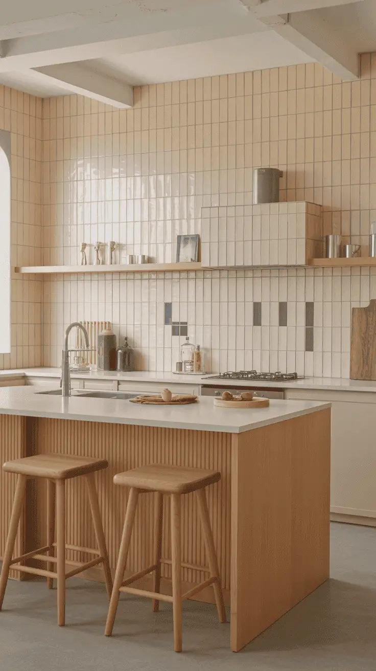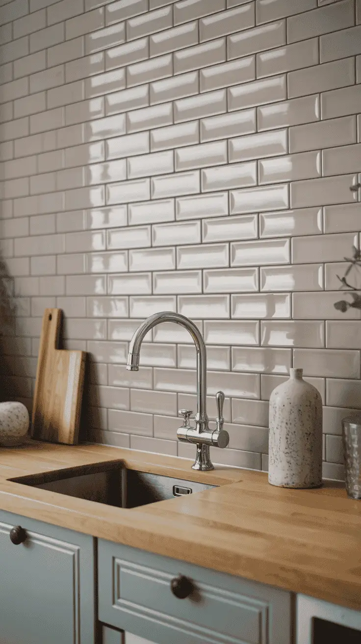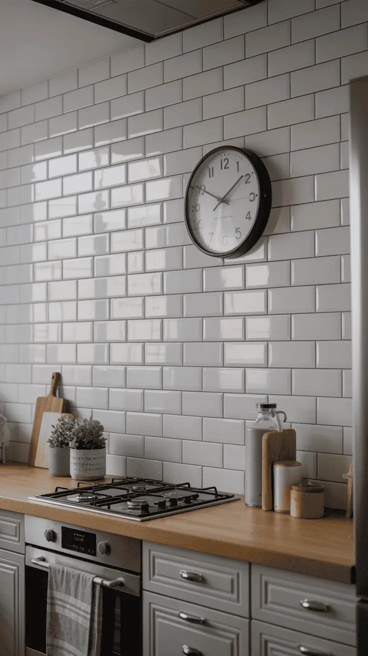 For a more authentic and classy look, replace the light-colored tiles with white finished bricks.