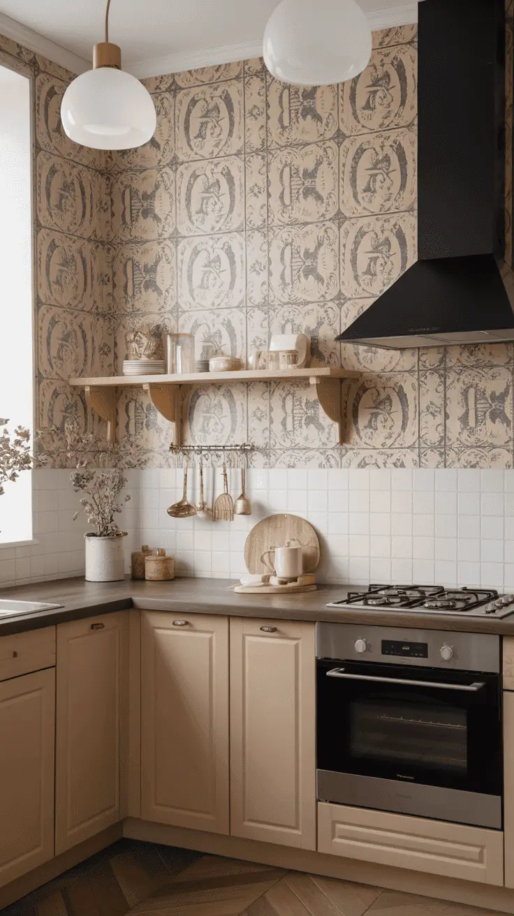 But, this doesn’t mean that you can’t have wallpaper altogether because of the high cost. You can instead go for framed wallpaper. It adds life to your kitchen at a fraction of the price without filling the entire wall.