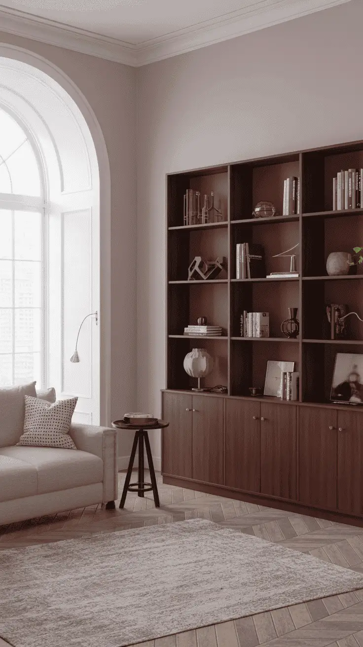 Just like green plants, wood tones will beautifully compliment your lilac living room. These tones add a sense of coziness and comfort to your space.