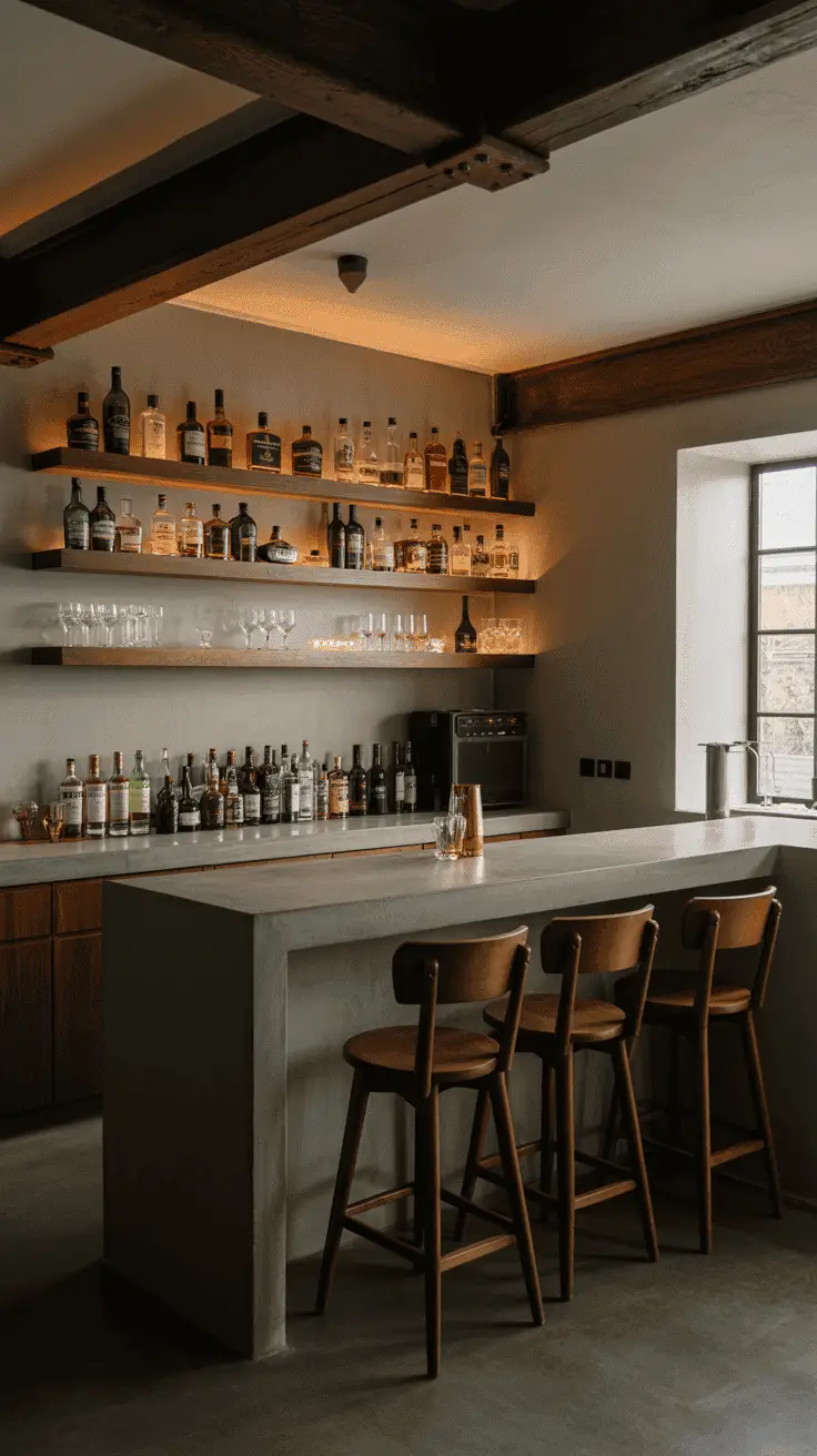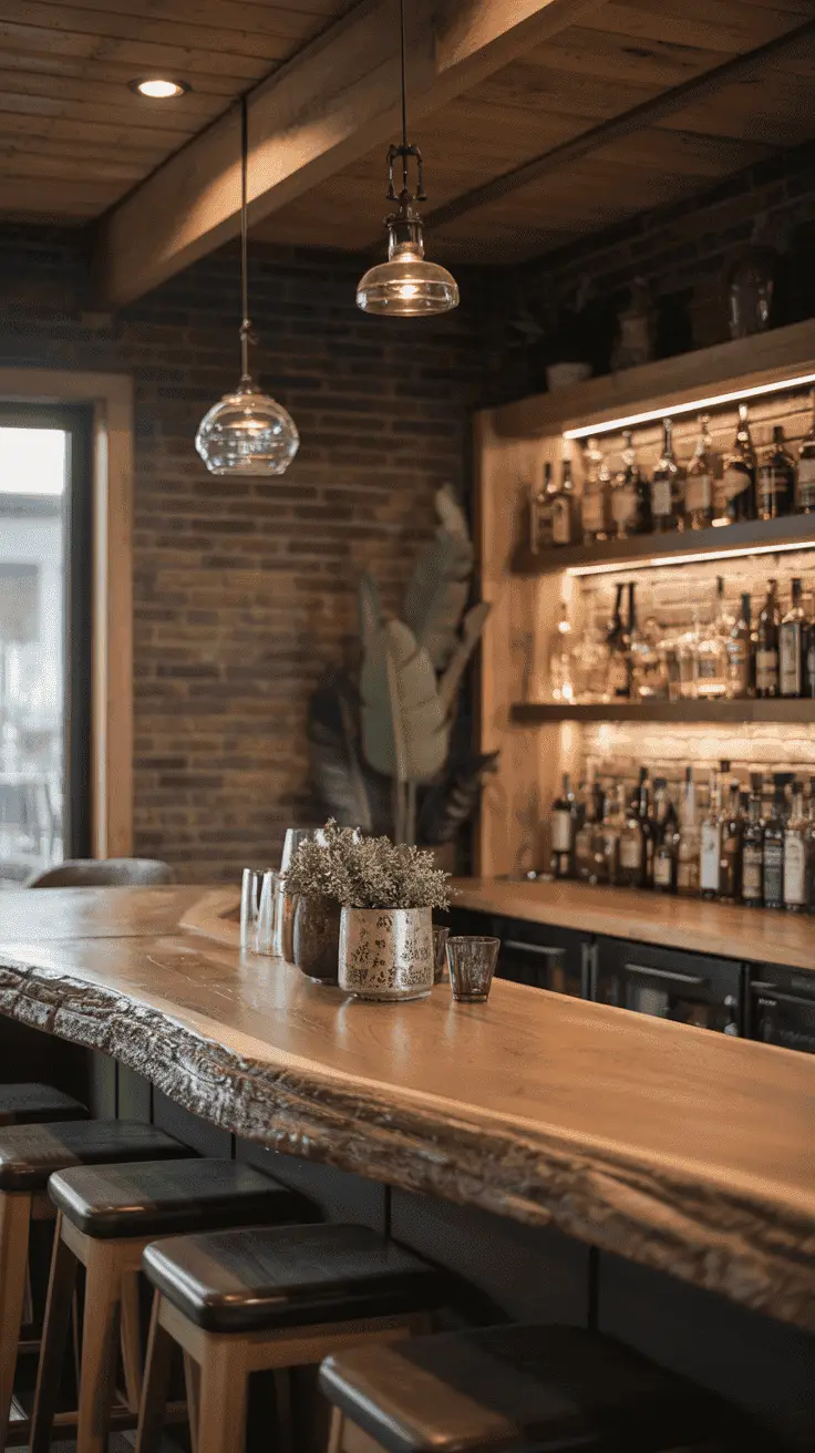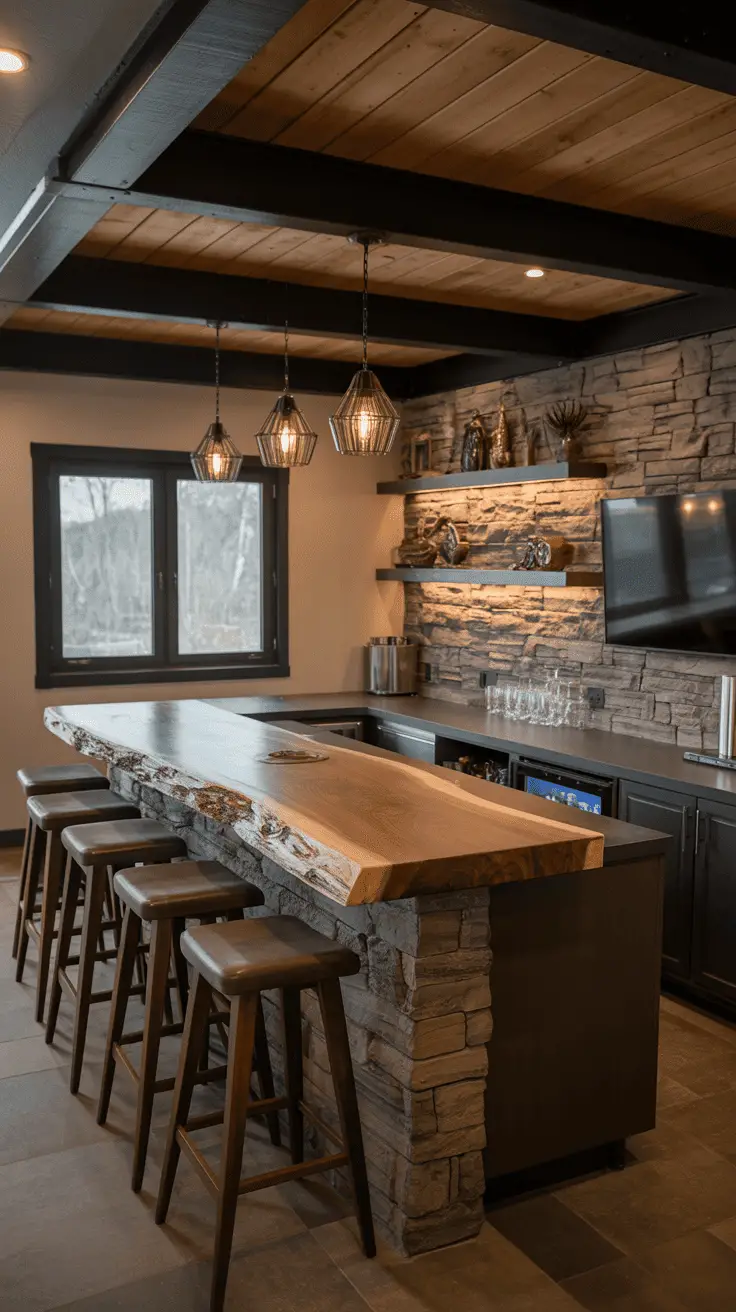 Making a rustic bar is all about embracing natural materials and exposed elements, from reclaimed wood to timber and even leather. You will want to evoke a vibe that is cozy, welcoming, and warm so that the space can be a true sanctuary for you to unwind.